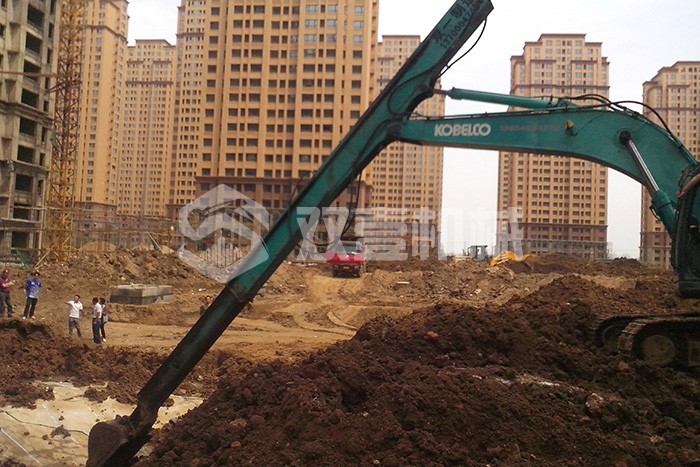 雙壹公司備有多臺長臂挖掘機,15-200米各種長度,一站式解決您的深坑挖掘難題。