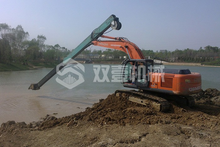 雙壹公司備有多臺長臂挖掘機,15-200米各種長度,一站式解決您的深坑挖掘難題。