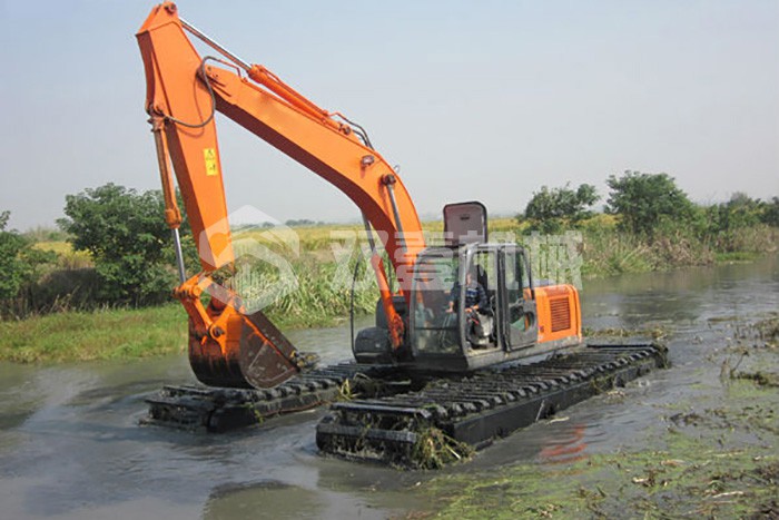 水陸兩用挖掘機(jī)浮箱:普通挖掘機(jī)安裝浮箱后,可在水面和淤泥中作業(yè),河道清淤、濕地沼澤治理、江、河、湖、海灘的環(huán)境整治及魚池的清理。